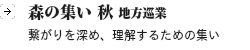 森の集いという地域や生業を越えた緩やかな繋がりが、距離を越えた「ムラ」を形成していると仮定し、その中心にすべての人が「共有できるなにか=鎮守の森」のような存在があり、そこに集う人々が失われつつある智慧や物語をもう一度紡ぎ直すことができるとしたら。